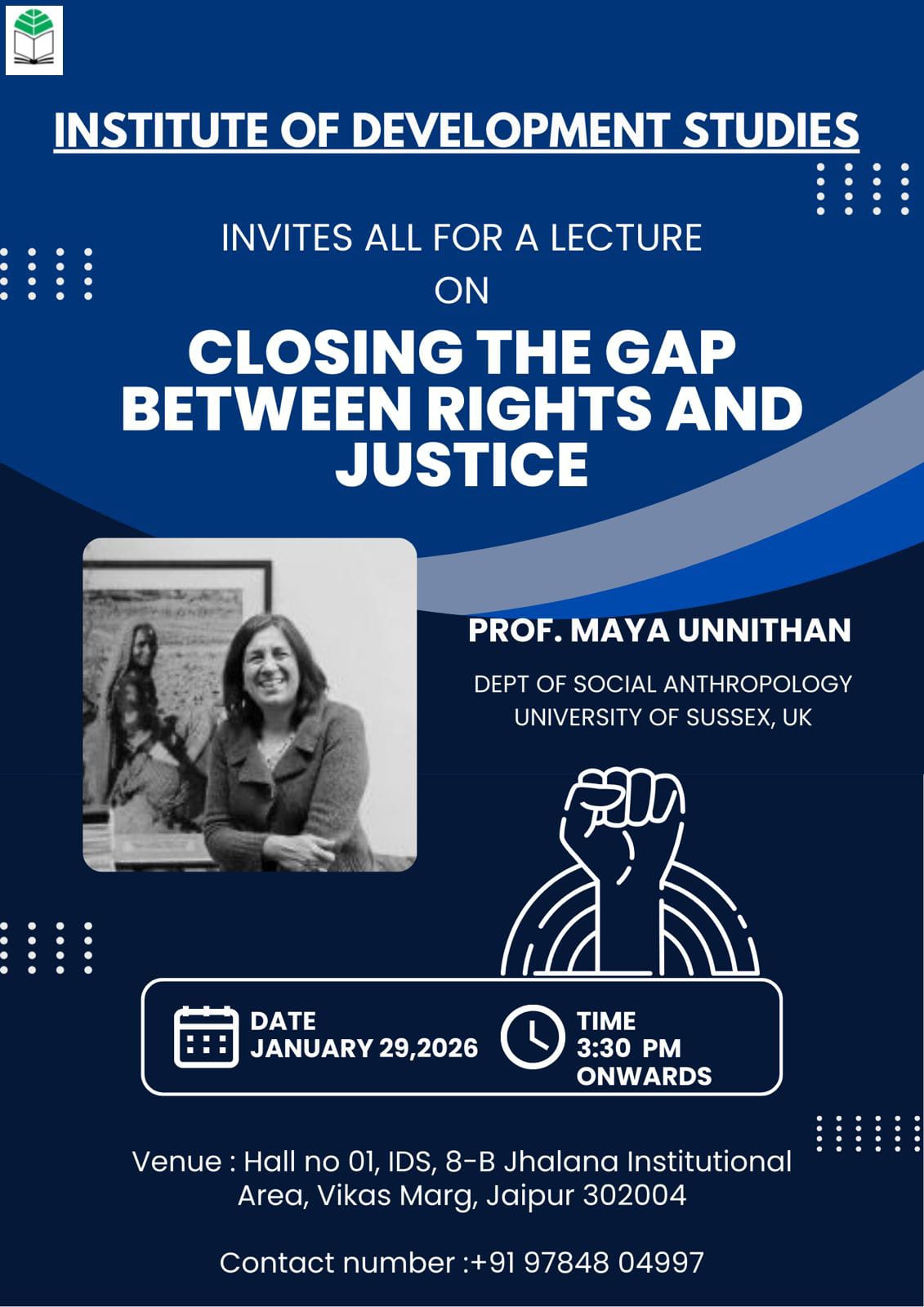 Event / Previous Event Lecture on Closing the Gap Between Rights and Justice – 29 January 2026 - 3:30 pm