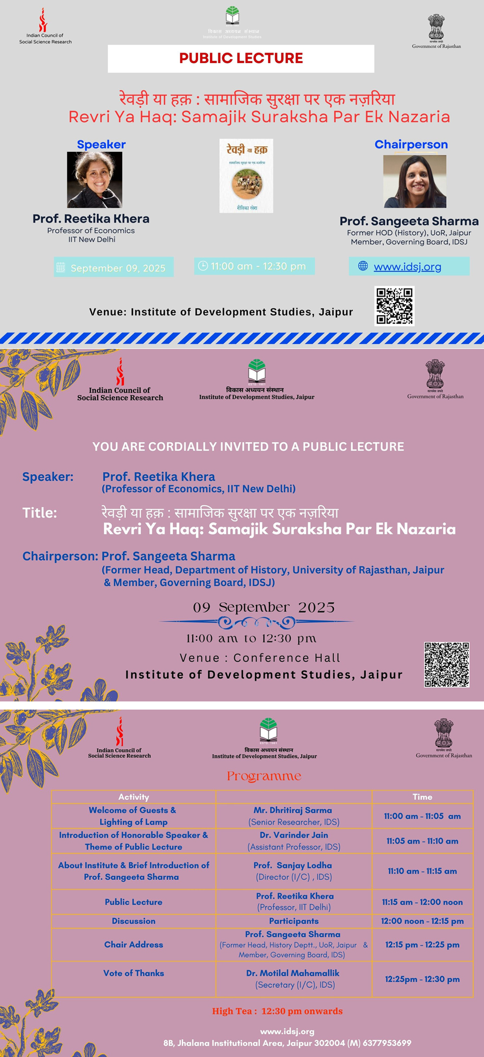 Event / Previous Event Public Lecture on “रेवड़ी या हक़ : सामाजिक सुरक्षा पर एक नज़रिया” – “Revri Ya Haq : Samajik Suraksha Par Ek Nazaria” – September 9, 2025